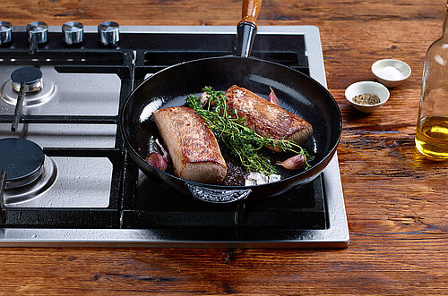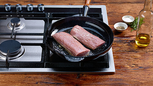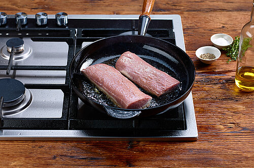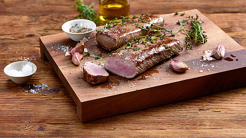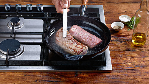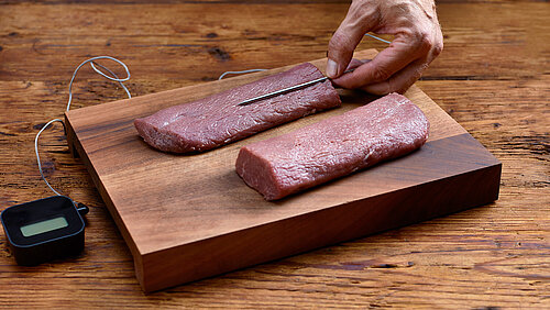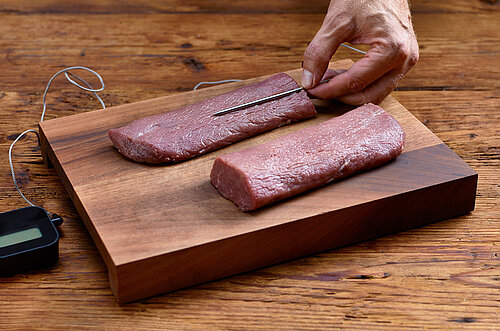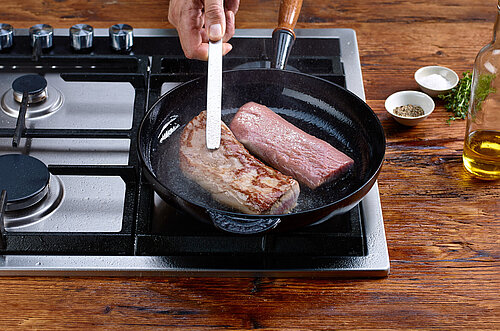 Beim Kurzbraten sagt dir die Kerntemperatur des Fleisches, welche Garstufe das Stück hat. Um die Garstufe zu bestimmen, gibt es analoge und digitale Fleischthermometer. Oder du hältst dich an die Zeitangaben im Rezept und kennst einen einfachen Trick.
