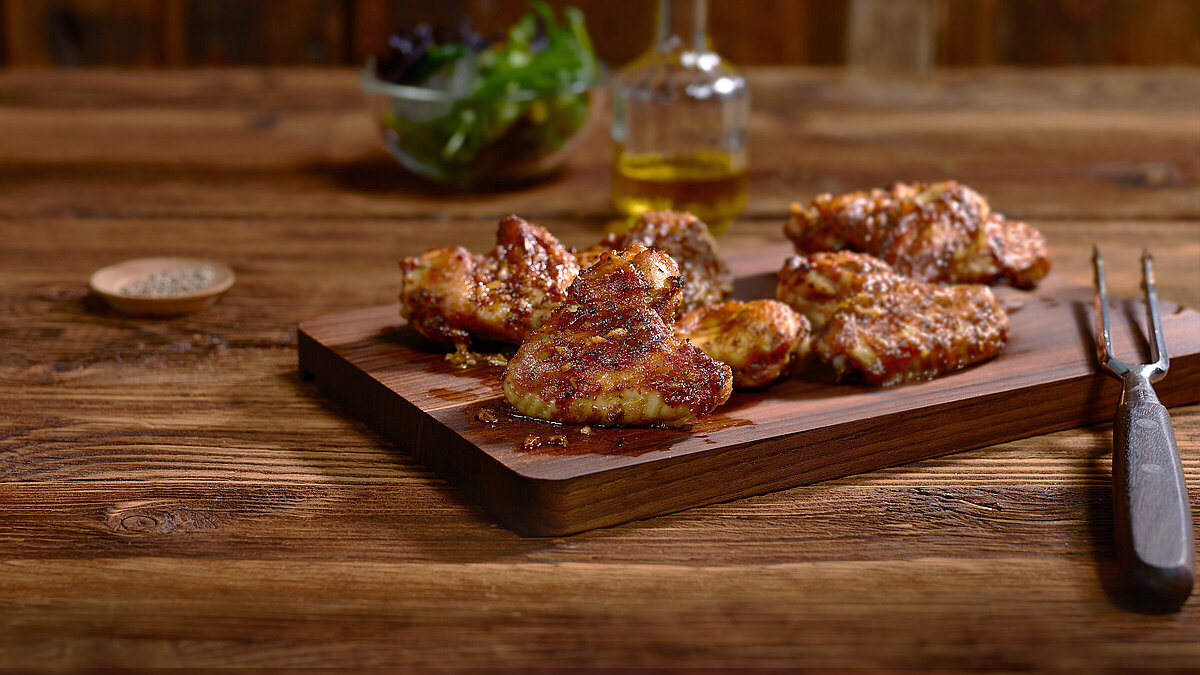 Après 50 à 55 minutes, sors les ailes du four et sers-les directement.