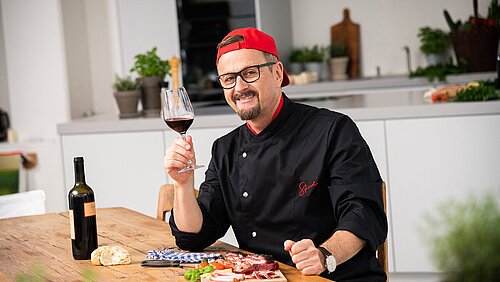 Ich mag das Fleisch nicht zu sehr gewickelt und gefaltet, eher „zufällig“ schön drapiert. Hauchdünnen Speck in Schleifen, Rohwurst am Stück, nur das Bündnerfleisch sollte bitte gerollt daher kommen - schön luftig und majestätisch! Passend dazu darf es ein leicht gekühlter Rotwein, zum Bespiel ein Blauburgunder aus der Bündner Herrschaft oder ein süffiger Merlot aus dem Ticino sein.
